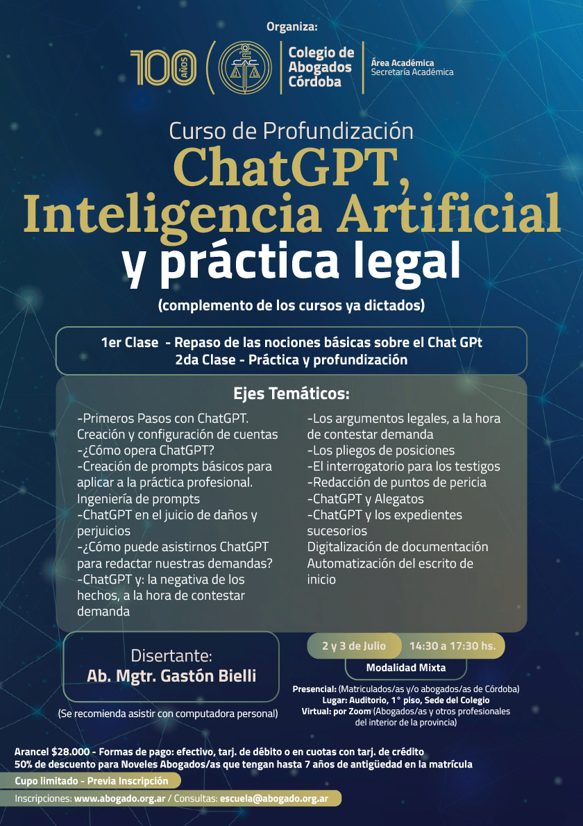Curso Profundización ChatGPT, Inteligencia Artificial y prá. legal